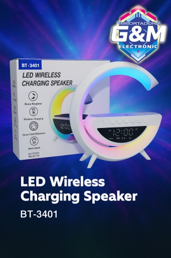 Lampara de Noche Inteligente Luz LED RGB Parlante Bluetooth, Reloj Despertador, Parlante Bluetooth y Carga Inalámbrica QI, Radio