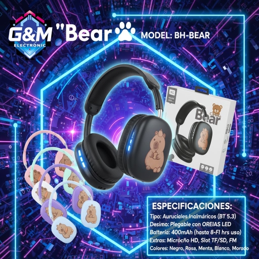 Este simpático auricular cuentan con conectividad Bluetooth de excelente alcance, ideales para escuchar música, ver videos, jugar o atender llamadas. Además, su vincha ajustable y plegable los hace perfectos para transportar a cualquier lado, siendo ideales para niños y adolescentes.