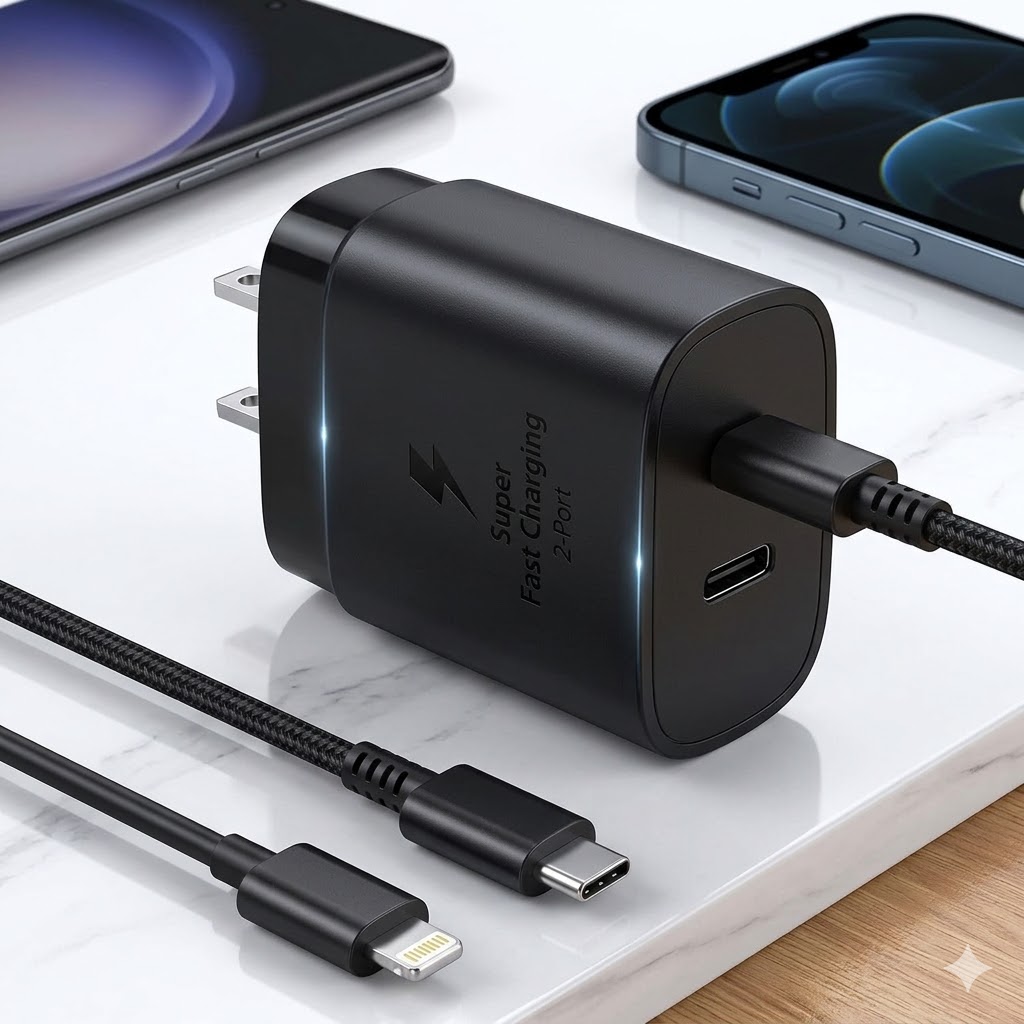Carga súper rápida para seguir conectado Entrega a tus dispositivos el poder de carga que merecen. El cargador de pared de carga súper rápida alcanza hasta 25 W para dispositivos compatibles. Úsalo con un cable de carga oficial Samsung de Tipo-C a Tipo-C para obtener mejores resultados. Carga ideal y en todo momento Carga eficazmente los dispositivos de manera más rápida y además funciona correctamente con otros modelos. Los dispositivos compatibles con Standard PD 3.0 obtendrán una carga máxima de 25 W, mientras que otros se cargarán a velocidades que puedan soportar. Consigue el tuyo en blanco o negro y combínalo con tu estilo. *La carga súper rápida requiere un dispositivo compatible con USB PD 3.0 que admita la carga directa. Los dispositivos que no admiten USB PD3.0 estándar o carga directa se cargarán a una velocidad menor que la velocidad SFC. *La velocidad de carga real puede variar según otros factores y circunstancias del dispositivo.