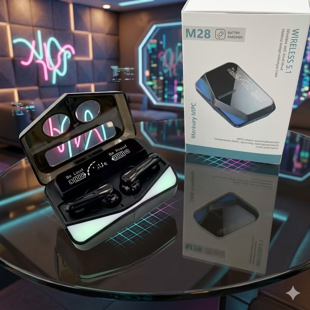 Duración de la batería extendida: los auriculares M28 vienen con una caja de carga de 3500 mAh de alta capacidad, lo que garantiza un uso prolongado sin la necesidad de recargar frecuentemente. Con esta impresionante capacidad de batería, puede disfrutar de horas de entretenimiento de audio ininterrumpido sobre la marcha. Di adiós a la molestia de la recarga frecuente y hola al disfrute de audio duraderoA